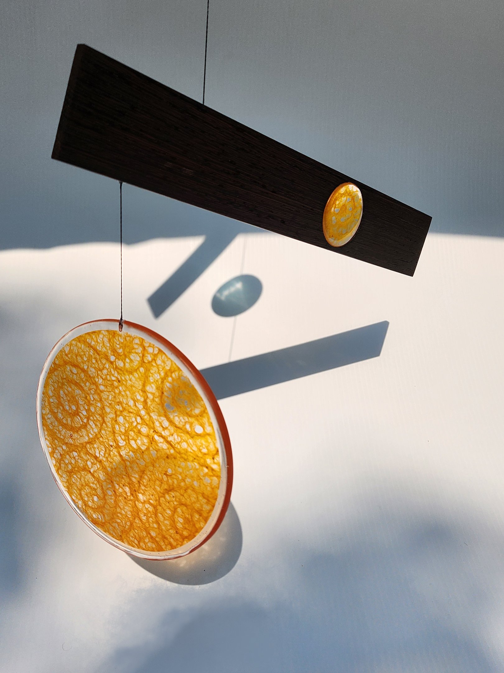 MOŽION mobiles are spare, elegantly playful explorations of balance, proportion, colour, shape, and motion. Each piece is a singular work of art — uniquely yours— inviting attention, reflection, and conversation.